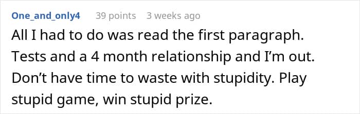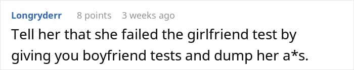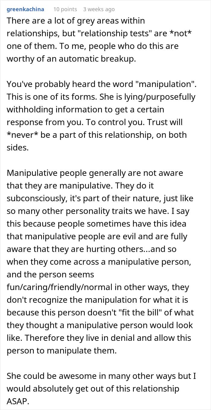 Just like it happened in this couple’s case, as the girlfriend wouldn’t stop giving her boyfriend secret tests, no matter how many times he told her they made him uncomfortable. But before he did anything about it, he turned online for unbiased opinions, which only confirmed his suspicions.