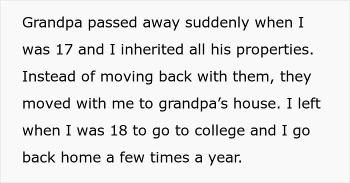 The poster was raised by his grandpa, and when the old man passed away, he left everything to his grandkid instead of his son