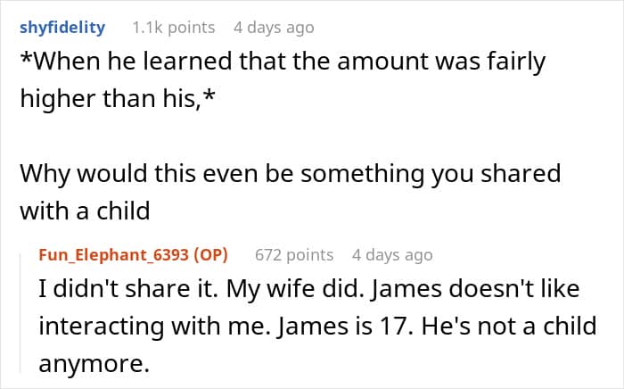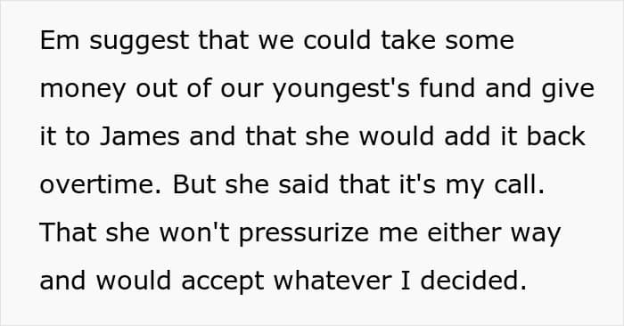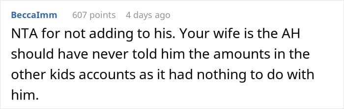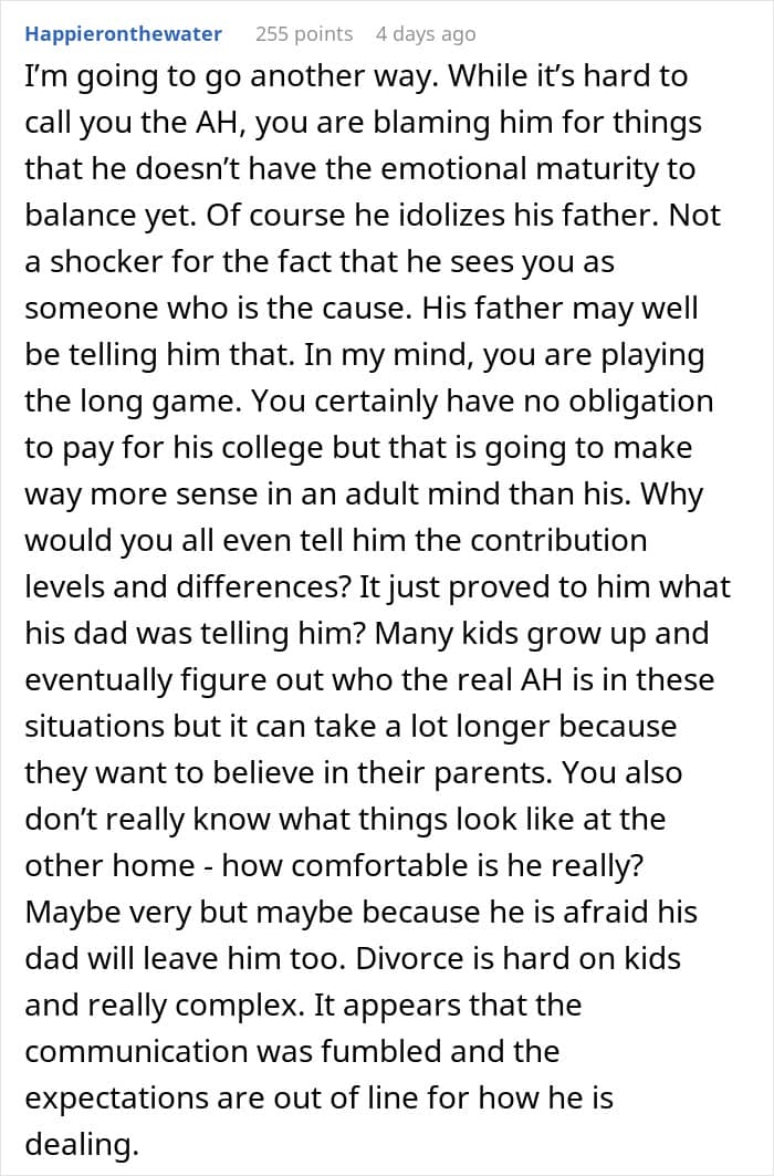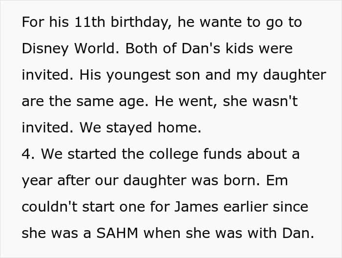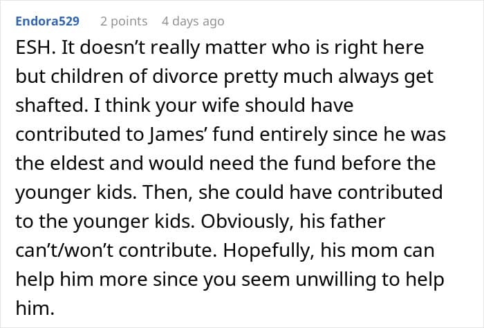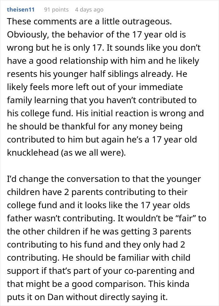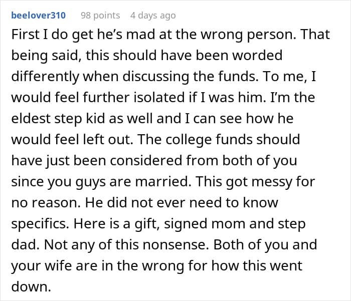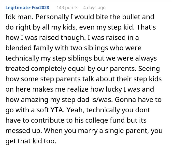 However, others thought that contributing to his stepson’s college fund would be the right thing to do