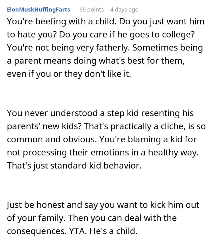 Some readers assured the author that his stepson’s education was not his problem, and he joined in on the conversation to share more details