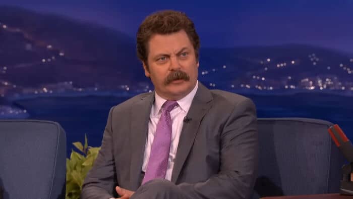 I met Nick Offerman who plays Ron Swanson from Parks & Rec. I was so nervous that I blurted out “You look a lot like the guy who plays Ron Swanson on Parks & Rec” and he responded deadpan “I’d like to think I’m a lot better looking than that guy” and as he saw my face go bright red and I was stammering “Oh I’m so sorry!”, he laughed and said “Just kidding it is me”