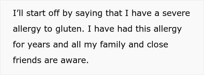 The day started off beautifully. The OP and her husband, excitedly awaiting their first child, gathered loved ones to celebrate. Her mother made sure everything was perfect including gluten-free food, since she’s had a severe allergy for some years now. With careful planning, her mother even set up a separate table to avoid cross-contamination.