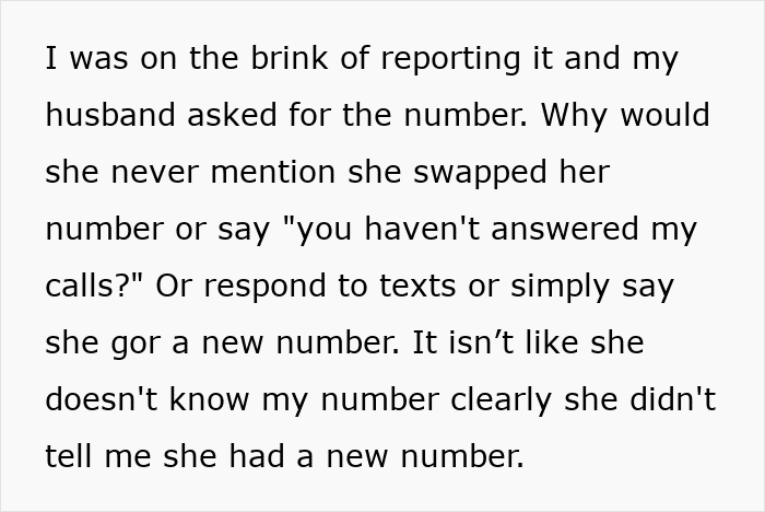 It turned out her mother-in-law had a new number but never told her. For months, she’d been unknowingly calling her, making her feel stalked. Hurt and confused, OP couldn’t understand why her mother-in-law had never mentioned it. Her husband brushed it off, but she’s still angry and turned to netizens to ask if she’s overreacting.