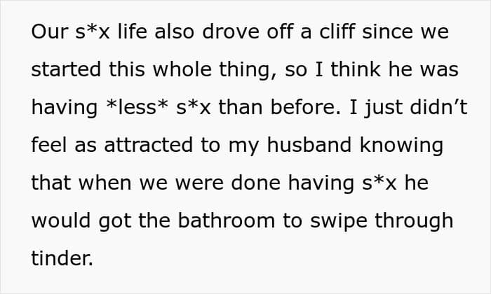At first, things seemed to go according to his plan. He went on a few dates that fizzled out, but he was happy. There was just one unforeseen side effect: their own intimate life nosedived, mostly because she found it profoundly unattractive that he’d immediately start swiping on Tinder after they were intimate. Then, she met Mark in a drawing class, and the entire dynamic of the game changed.
