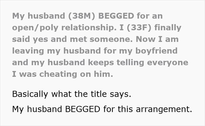 After a year of relentless pressure, a wife finally agreed to her husband’s demand for an open marriage