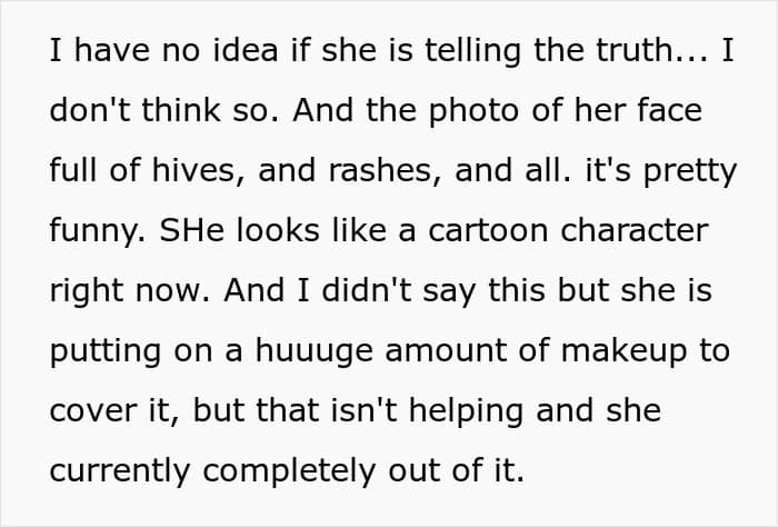 Netizens reassured the man that he was not a jerk and the whole thing was on the woman, who never told him about the allergy, nor was she supposed to eat his food, anyway