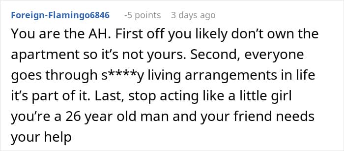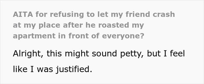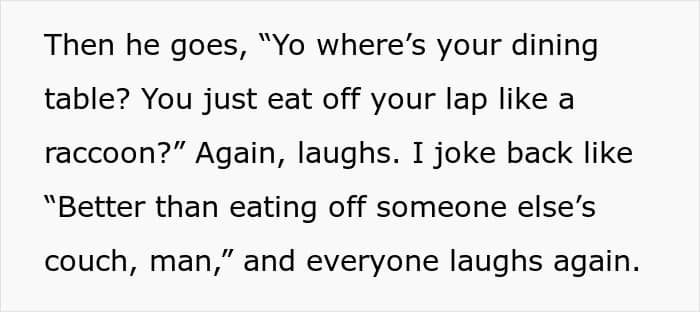 Unfortunately, this guy completely ignored basic courtesy when coming to a friend’s home. Not only did he make fun of the buddy’s humble abode, but he also expected to let him crash there after a few days, for which he got a big fat rejection.
