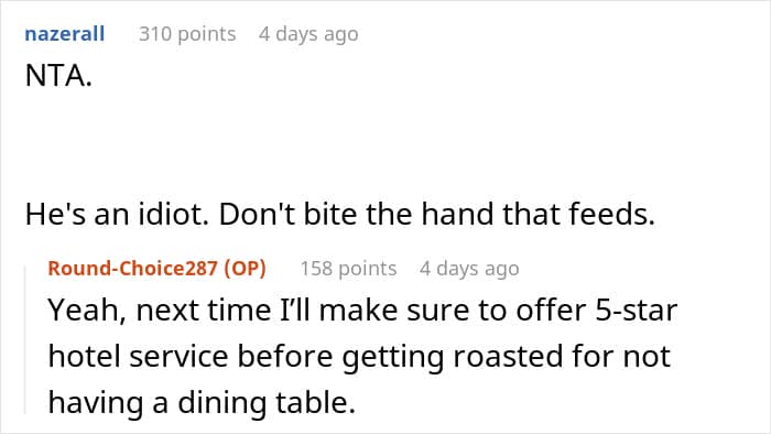 First and foremost, a big ‘no’ while visiting other people’s homes is providing unsolicited critiques about their space, just like the person in this story did. People put a lot of effort into curating their home, so they might feel hurt when hearing negative and unprovoked comments about it, which, as a result, can put their relationship with guests in jeopardy.