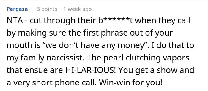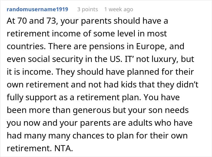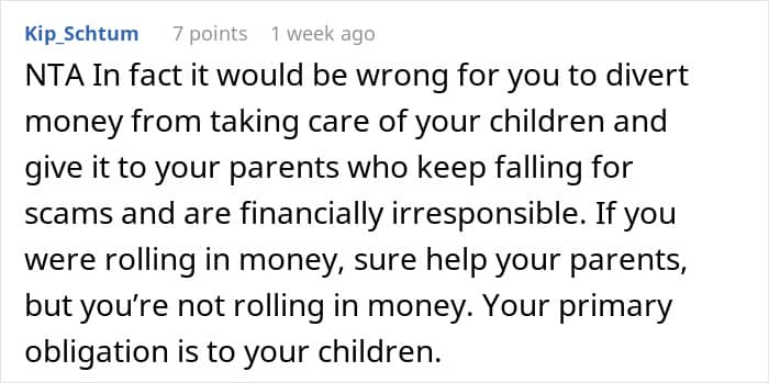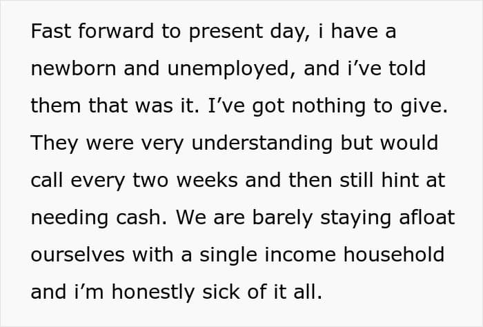 This woman did the same for her parents, but once she had her own family and started having kids, it just became unfeasible. Irked by thoughts that she’s being selfish and the unending phone calls asking for money, she decided to ask for opinions online. Was she right to fund her parents’ retirement when they spent their whole lives squandering any savings away?