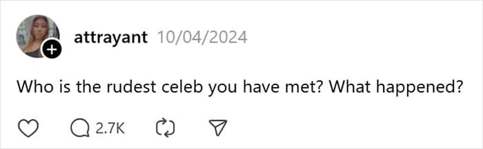 Many people have had this experience with celebrities, and it’s recently become a topic on Threads. One user asked, “Who is the rudest celeb you have met? What happened?”