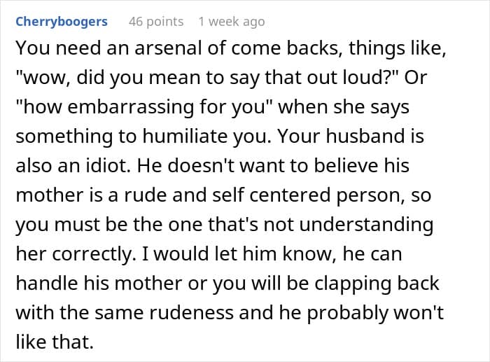A woman knows this feeling all too well after her recent dealings with her mother-in-law. She had initially put up with passive-aggressive comments, including matters that were highly sensitive to her.