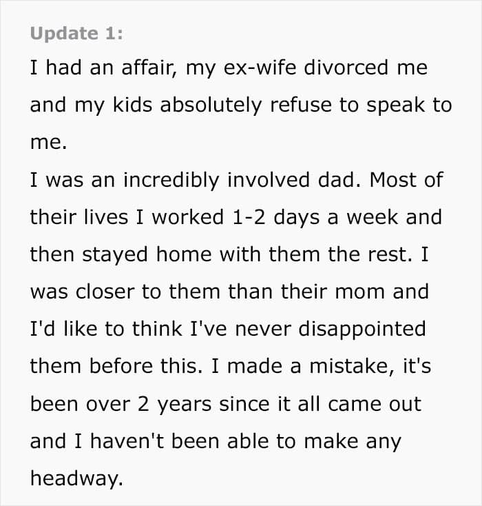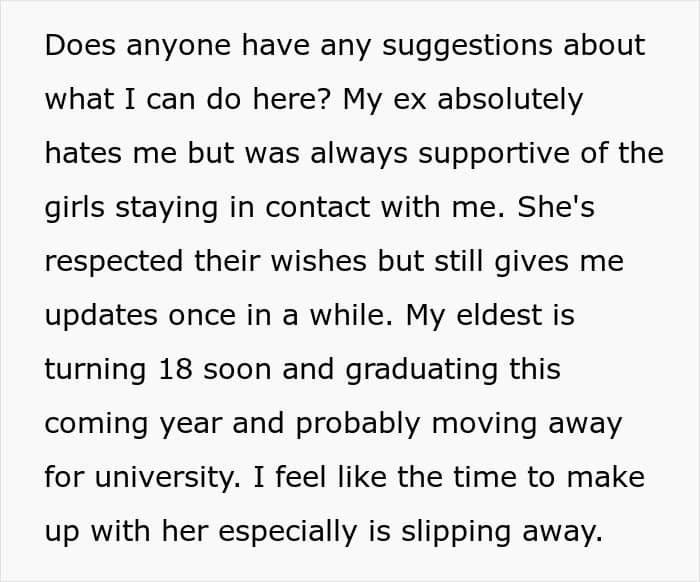 Later, the dad shared an update and asked for suggestions on repairing his relationships with his daughters