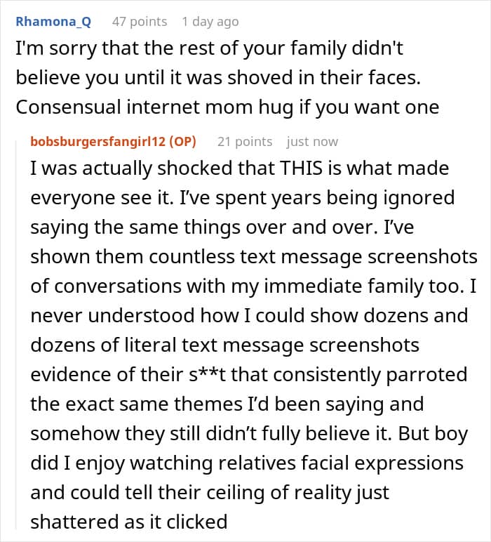 As for this particular situation, there’s probably little that can be changed – and our heroine is already an adult and a decent person, so we can only wish her strength and patience. Well, and also give her all kinds of moral support. Which is precisely what many commenters on her post did. So what do you, our dear readers, think about this story?