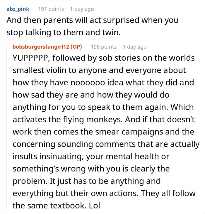 The author of this story has been the family’s scapegoat for years, while her twin sis is, vice versa, the golden child