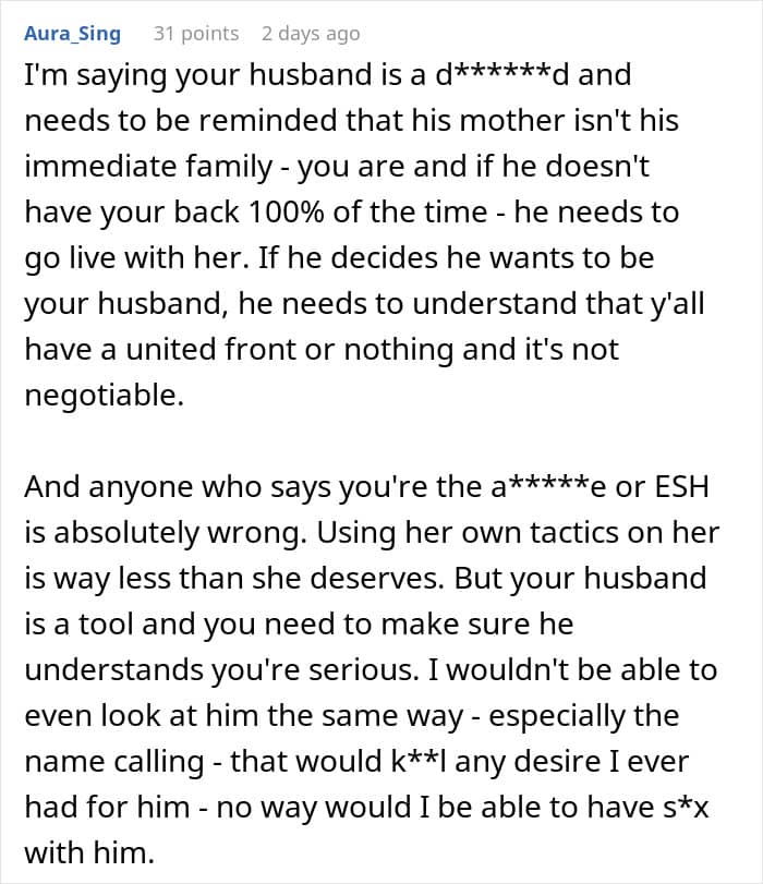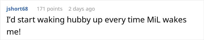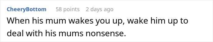 But the petty revenge backfired when the mother-in-law told OP’s husband about her early morning mischief. Furious, he accused OP of cruelty and demanded she apologize. OP feels the opposite, believing she’s the one who deserves an apology for her mother-in-law’s bad behavior, so she turned to netizens for a sense check.