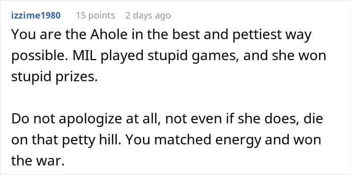 In the comments, readers seemed to agree that the woman was not a jerk for pulling the pranks and that her mother-in-law had to go