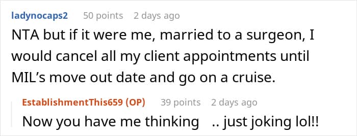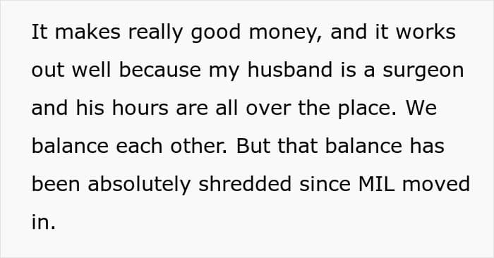When her mother-in-law moved in “between leases,” the original poster (OP) tried to be gracious. But with her surgeon husband working long, unpredictable hours and her own nail business relying on early-morning prep, the arrangement quickly turned into chaos. Sleepless nights and snide remarks left her on the brink of snapping.