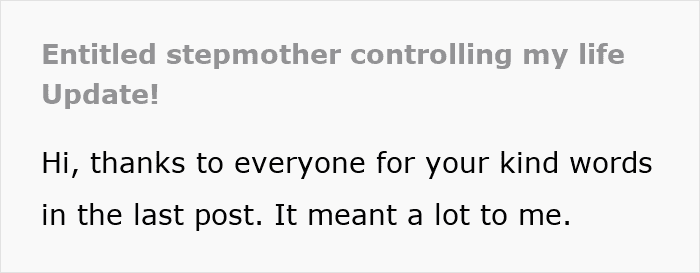In an update post, the teen said that she couldn’t deal with her stepmom’s behavior anymore and wanted to move in with her aunt instead