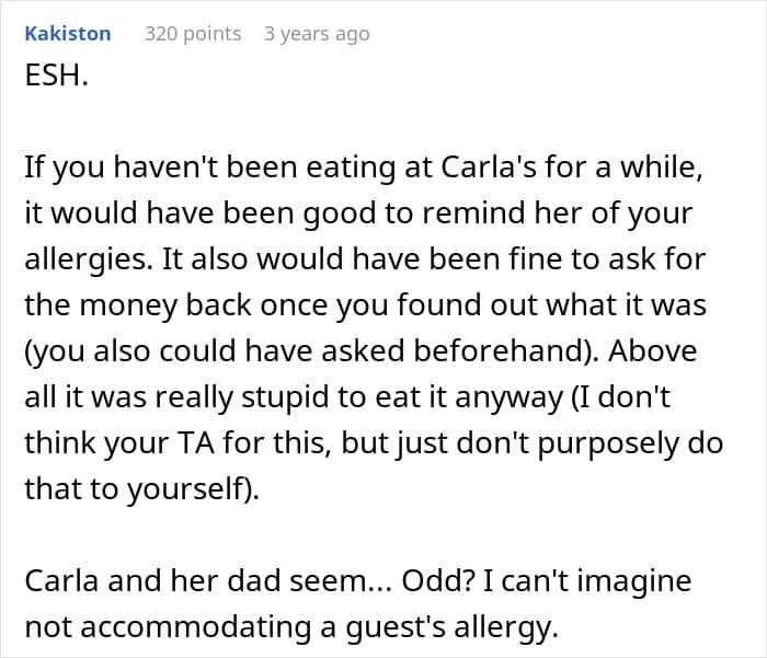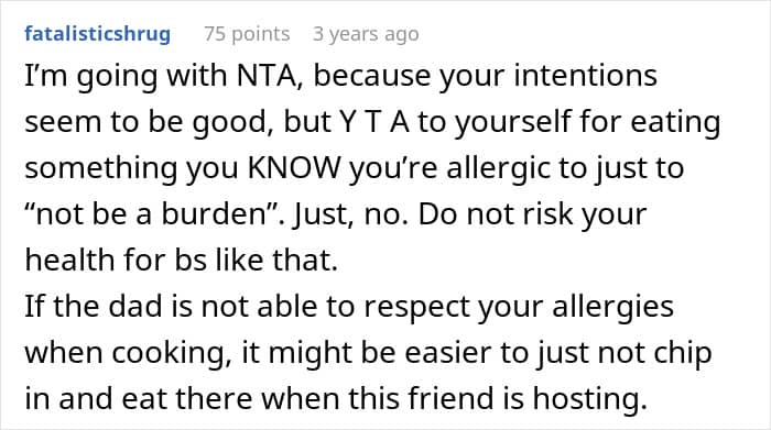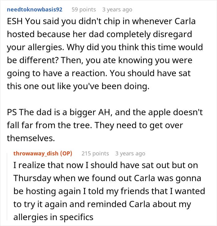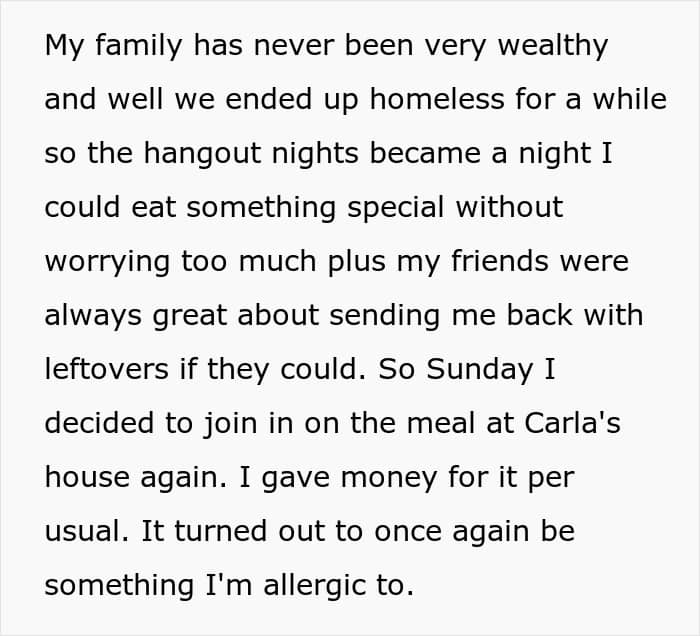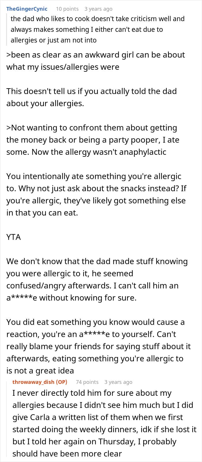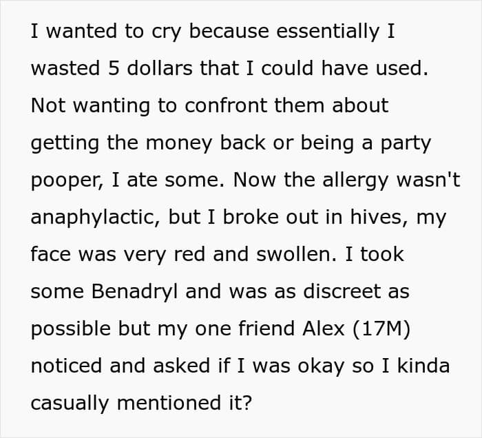 When the hosts recently made food the teen was allergic to, she decided to eat it anyway — instead of wasting money or causing a scene. Her attempt to be polite quickly backfired and now friendships are at stake.