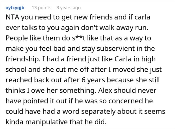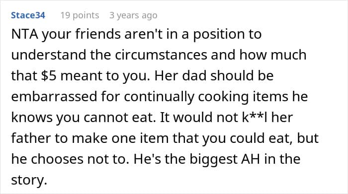 A teen has told how she barely scrapes together $5 every week to be able to contribute to Sunday dinners with her friends. They take turns hosting, but one particular home always seems to serve up problems for the young, cash-strapped woman.