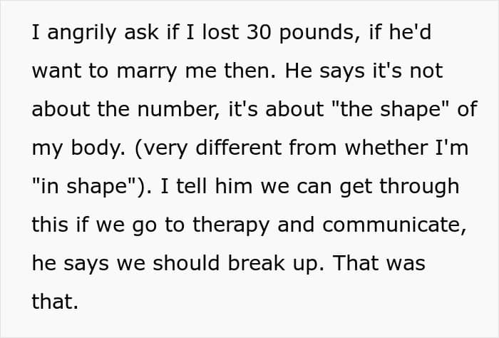 Unfortunately for this woman, her BF admitted not being attracted to her ‘shape’ and even broke off things because of it