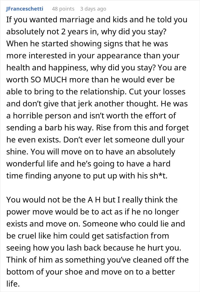 Unfortunately, such a thing happened to this woman, whose boyfriend broke up with her because of her ‘shape’ and cheese-eating habits. Hurt about the whole situation, she turned online to ask if taking revenge and letting him know what he lost would be worth it.