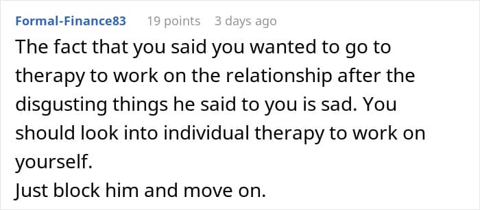 Partners may have learned body-shaming behaviors from their caregivers/environment or are releasing their own internalized shame about their body, but this doesn’t make their actions excusable. “It’s an opinion of someone else who has their own toxic shame that is often projected on others for power and control,” Bryant said.