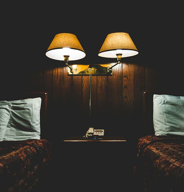 I had to book a motel room for a wedding, but I noticed that as you drove further and further out of town the motels got cheaper. We figured it would be fine to go super-cheap because we’d only be coming back late and leaving early. We booked into the $25/night place, took our key and went on to the wedding without ever looking in the room. Coming back late at night and it was absolutely exactly what you’d expect from a low-budget horror movie. We spent the night sitting back to back on the vibrating (not vibrating; broken) bed staring out of the front and back windows looking for m**derers.