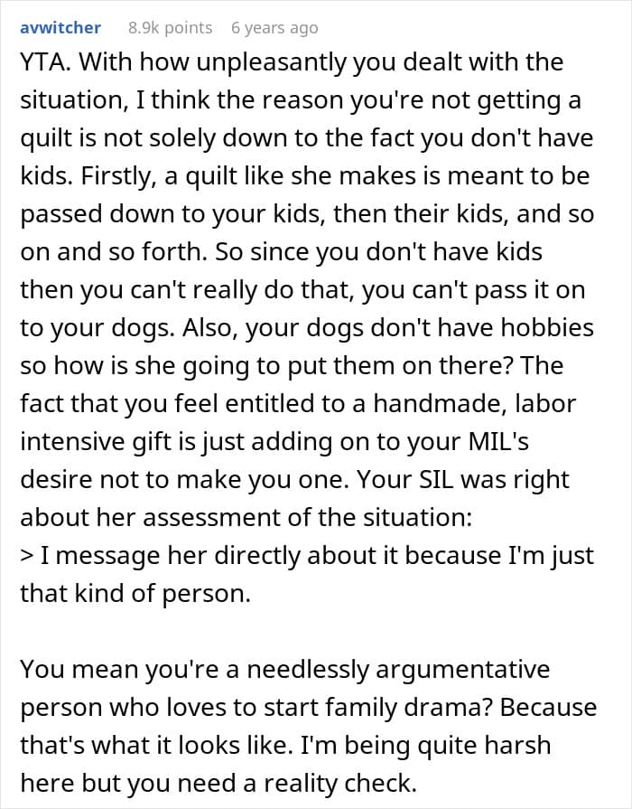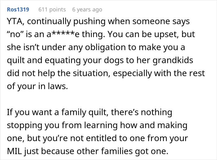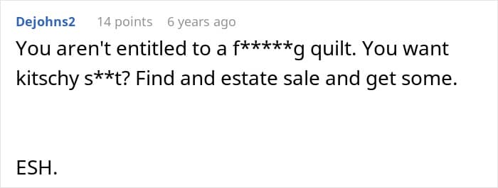 We would love to hear your thoughts on this situation in the comments below, pandas. Do you think this woman was wrong for feeling entitled to a quilt from her mother-in-law? Then, you can find another We article discussing similar family drama right here.