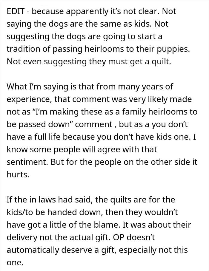 However, others thought that the author had a right to ask if she would be getting a quilt