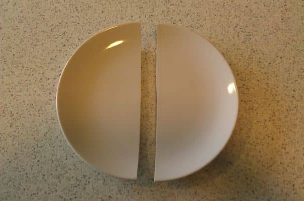 #42 I Dropped A Plate By Accident,and It Spilt In Half Perfectly. No Shards Or Chips