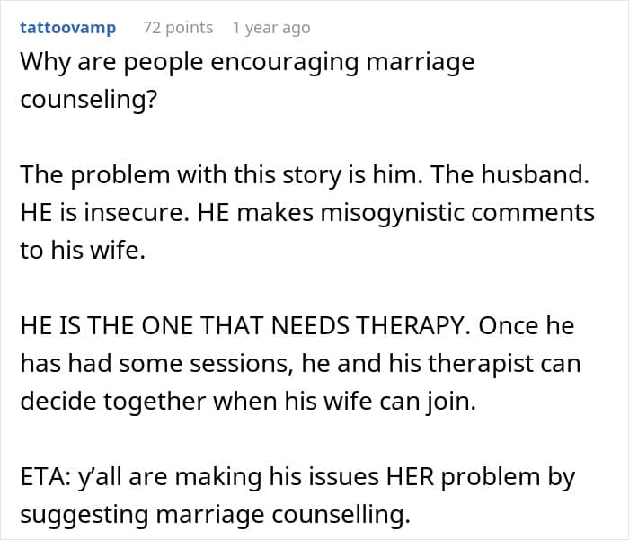 Readers were appalled by the husband’s actions, with some suggesting he seek counseling
