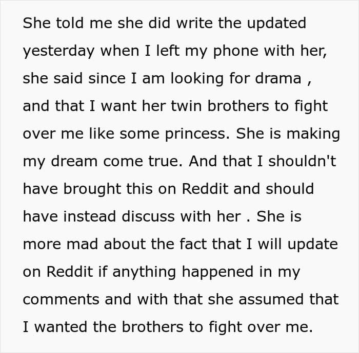 In a follow-up, the author shared that her sister-in-law tried to insert herself into the middle of the fight