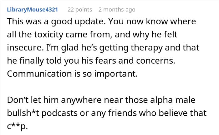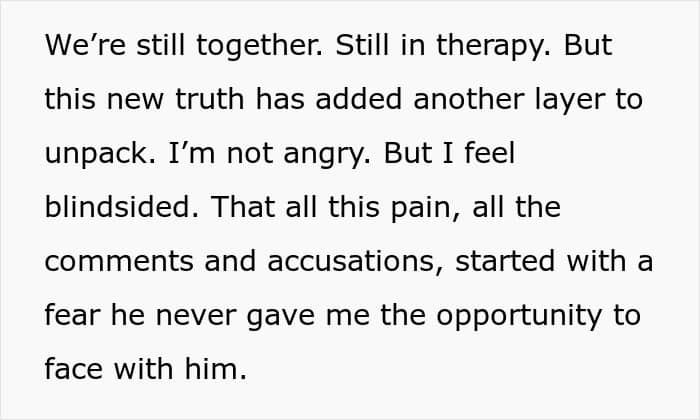 In her last update, she explained that she found another root of his insecurity, and together they’ve been taking steps to rebuild trust