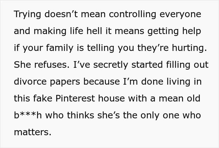 It’s therefore great that the OP finally decided that enough was enough and that he was going to divorce his wife. That’s why he had secretly begun filing the papers for it and couldn’t wait to escape her clutches.