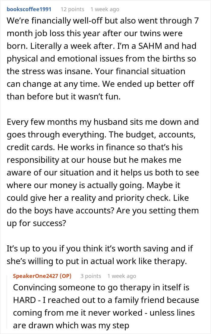 All this tension at home had definitely put pressure on the OP’s marriage, and studies show that couples who are too focused on money like this tend to experience dissatisfaction in their relationships. This is because when people ignore everything else to pursue their financial goals, they might neglect their family in the process.