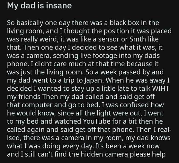 #20 My Dad Is In Texas Right Now And Is Making Me Send Photos Of My Room Every Day Or He Takes 100$ From My Account