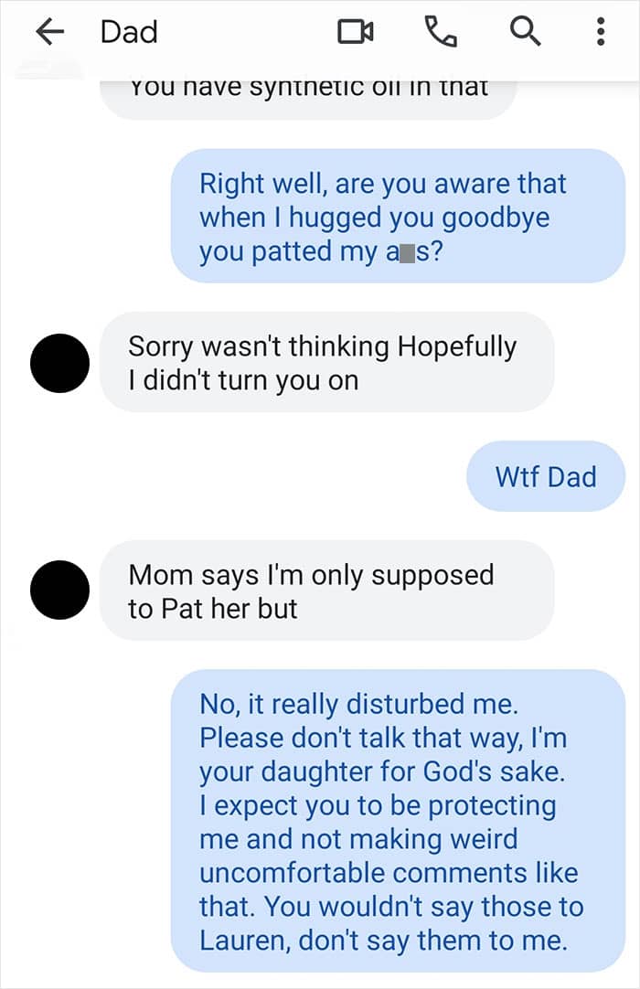 #10 Last Year’s Thanksgiving With Dad Brought This Out. Not The First Time He’s Made Comments Like This, And I Was Told I Was Gross For Getting Upset