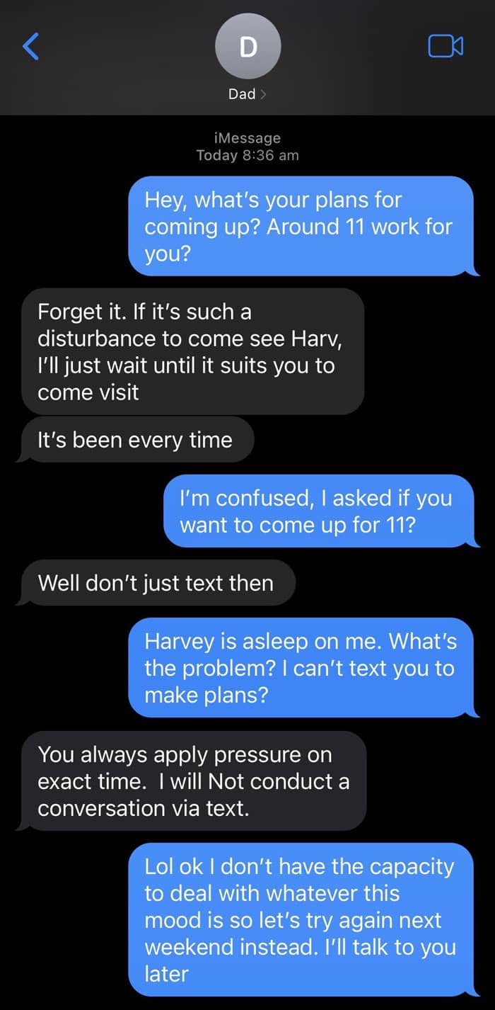 #34 Texting My Dad About A Previously Organized Visit With My 9-Week-Old Baby. We Agreed Yesterday That He Would Come Up Around Lunchtime. How Dare I Suggest A Time For Him To Arrive