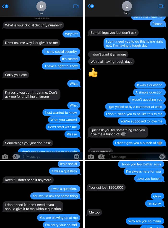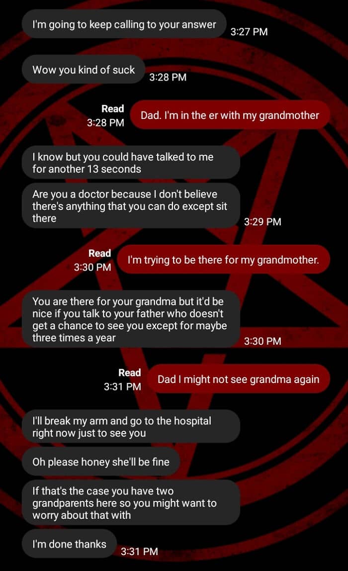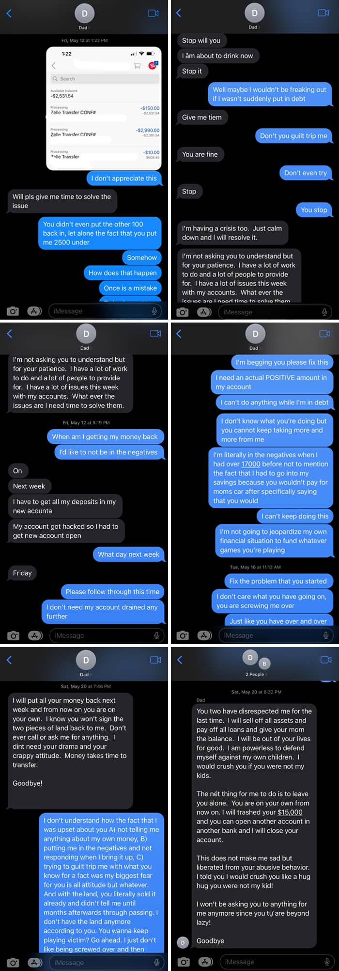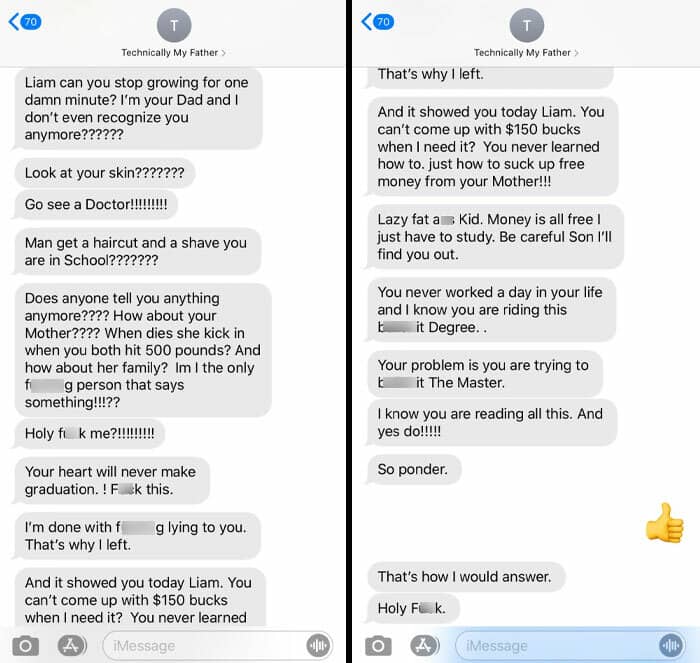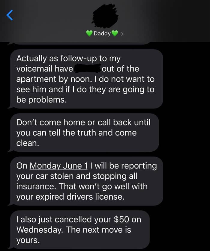Unfortunately, not everyone fits the bill. Some dads are downright toxic and deeply mean-spirited. We has collected some of the most awful message exchanges that people have ever had with their ‘dads.’ They’re examples of behavior that nobody should have to tolerate, and why healthy boundaries are vital, even when it comes to your relatives.