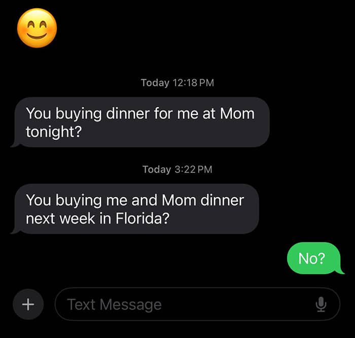 #66 Dad Will Text Me Stuff Like This To Guilt Me Into Ordering Him Take Out. I’m Sick Of It And Don’t Know What To Do