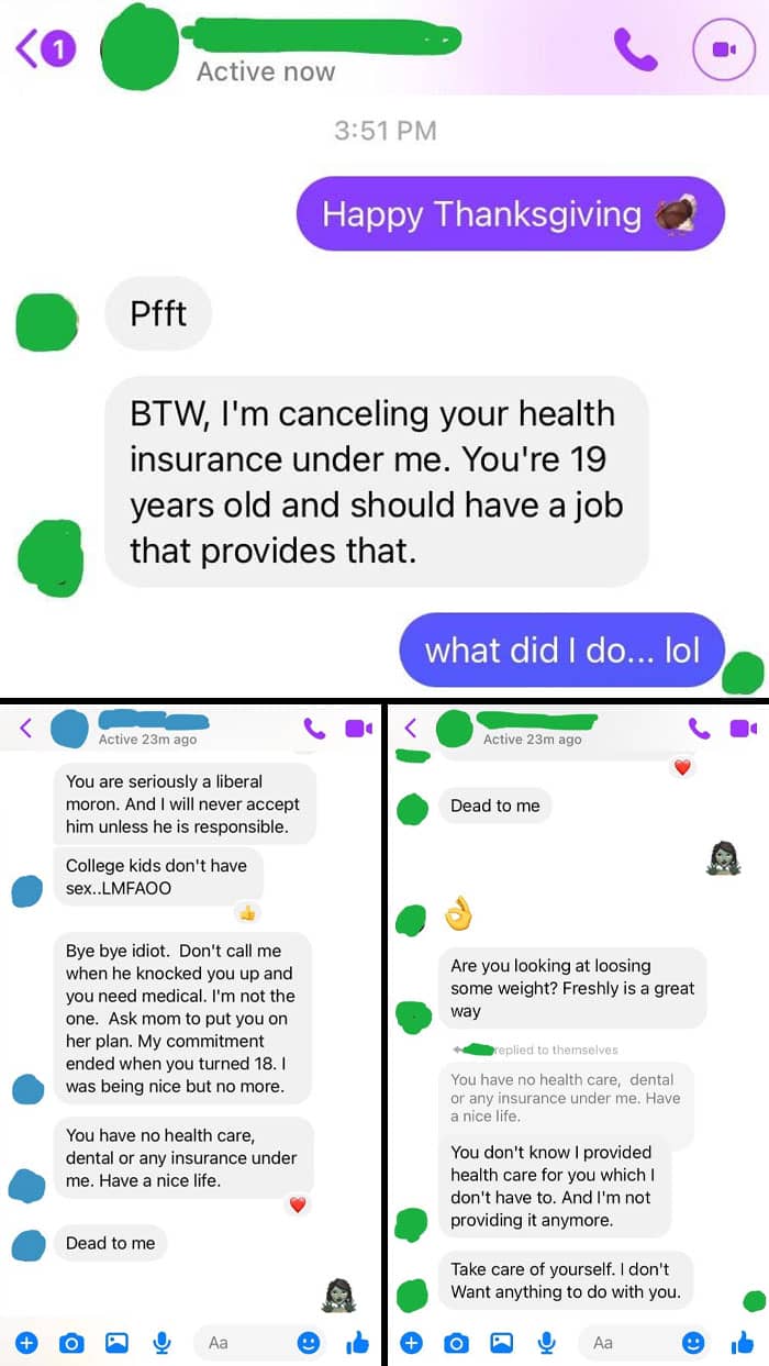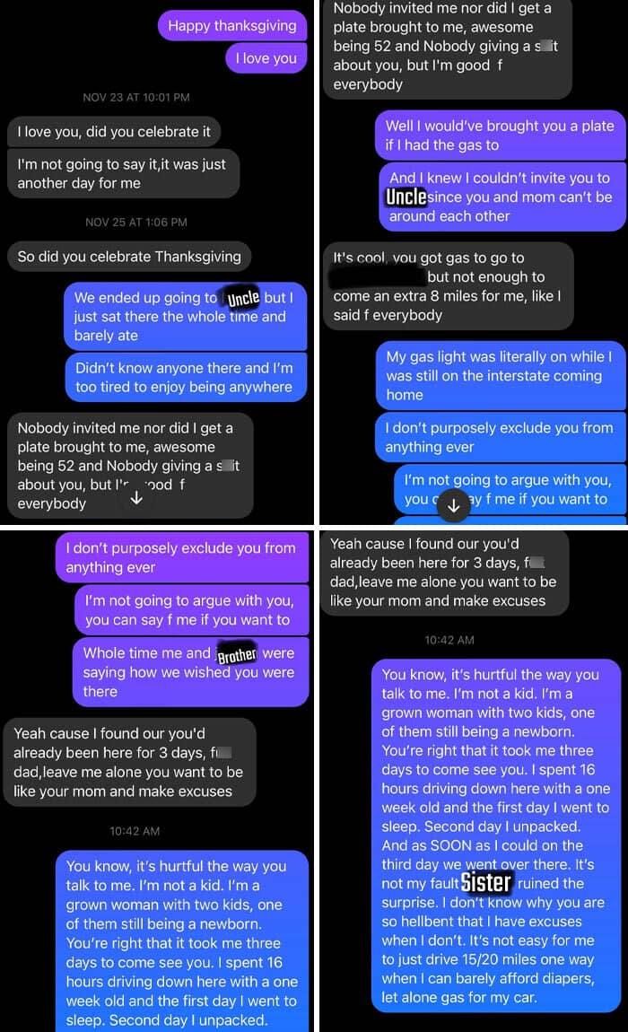 #18 My Father With Whom I Have Little To No Contact, Put Me (24 Years Old) And My Sister (40 Years Old) In A Group Chat To Chastise Us For Not Texting Him On Thanksgiving