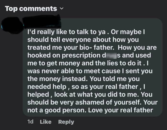 #70 Biological Dad Found My Post On A Public Game Group And Commented This. I’m No Contact With Him And 7 Years Sober