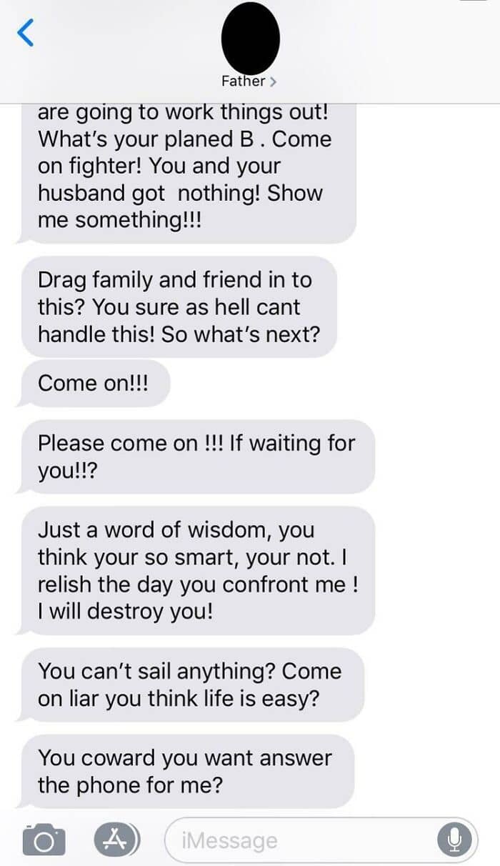 #42 A Text From My Father, Who Has Blamed Me For All Of His Marriage Problems With My Mom Since I Was 9 Years Old. He Sent Me This Gem While My Husband Was Deployed