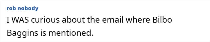 “I was curious about the email where Bilbo Baggins was mentioned,” wrote one netizen