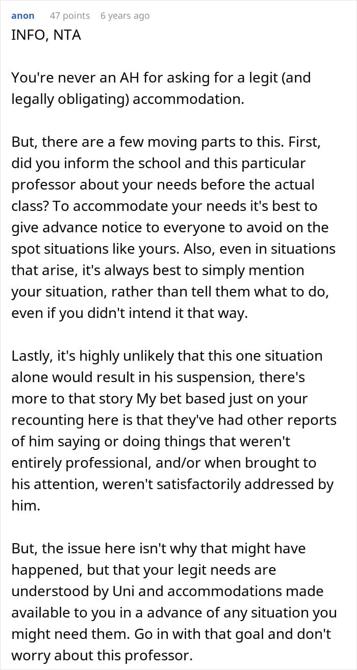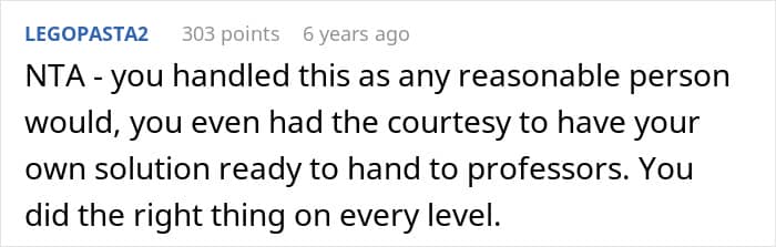 Most commenters fully supported the original poster, arguing that the professor perhaps just wanted to go on a power trip about it. However, responders were glad that this crude attempt at self-affirmation at the expense of a student cost the teacher dearly. So what do you, our dear readers, think about this story? Please feel free to leave your comments here.