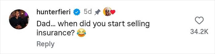 “Dad… when did you start selling insurance?” his son Hunter Fieri wrote in the comments section.