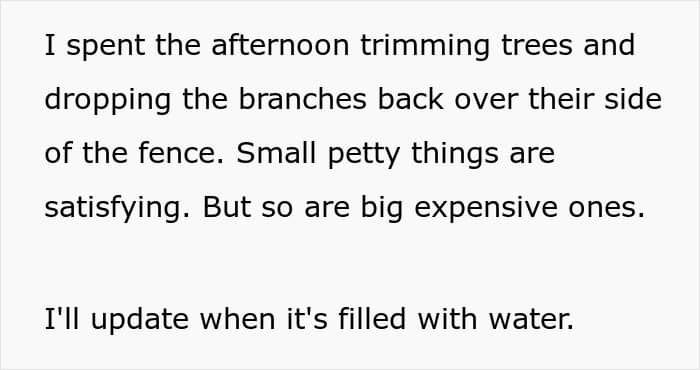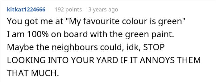 As for the comments to the original post, people were simply outraged by such behavior on the part of the author’s neighbors, and were only surprised at the OP’s patience – after all, in their place, most of the commenters would have taken legal action way earlier. And commenters also sincerely believe that this story is an excellent example of petty revenge towards overly nosy neighbors.