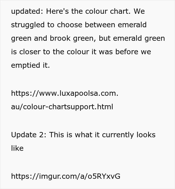 “Maybe the neighbors could, idk, stop looking into your yard if it annoys them that much,” one of the folks aptly wrote in the comments, and one cannot help but agree with this. By the way, have you ever encountered… no, not similar neighbors, but swimming pools painted in colors other than blue? Anyway, we’re looking forward to your own comments and stories as well.
