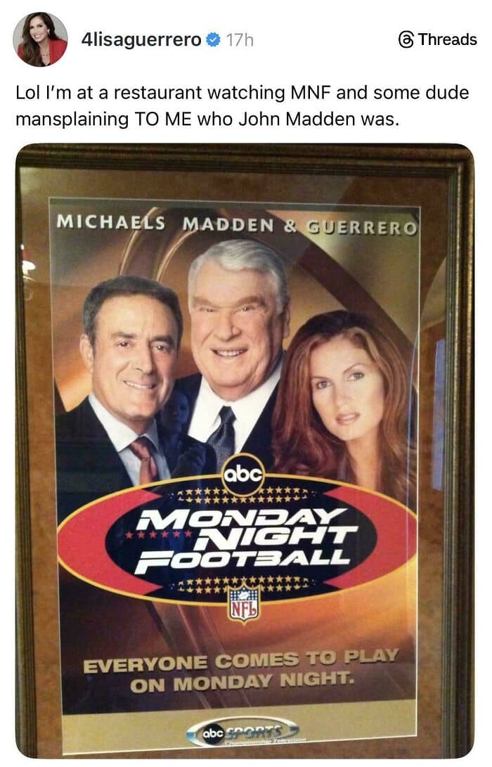 #49 Lisa Guerrero, Who Worked As A Sideline Reporter For Monday Night Football For One Season, Posted This On Threads